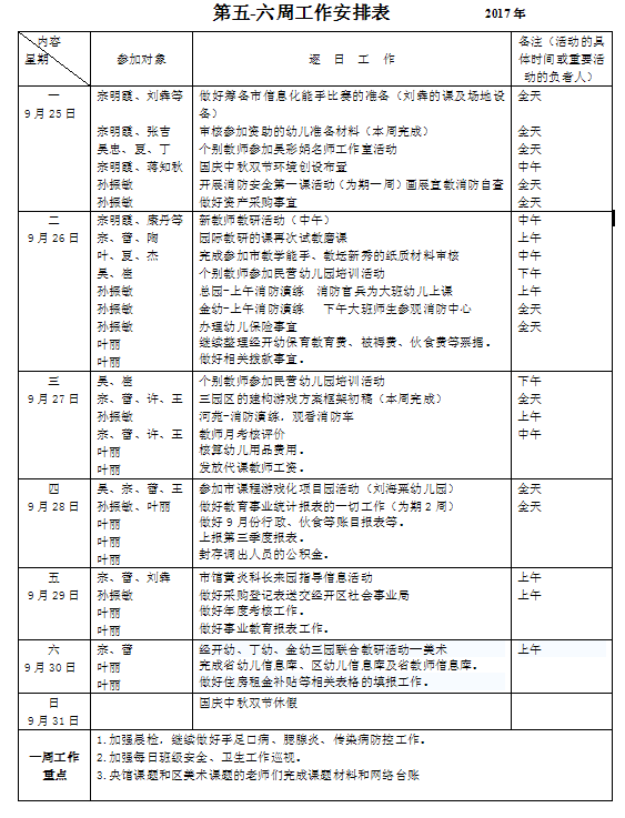 第五、六周工作安排表