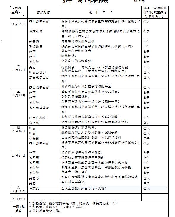 第十二周周活动安排