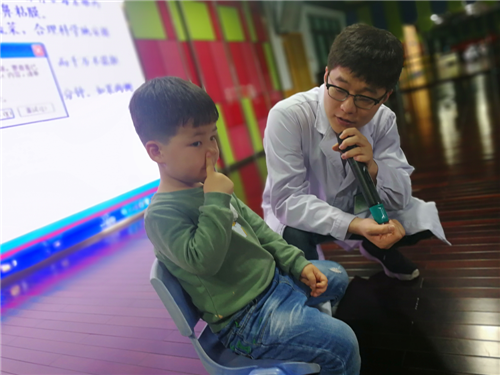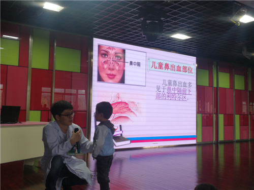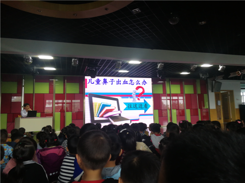 在活动过程中,刘医生通过观看图片使幼儿认识鼻子,了解鼻子的作用和保护鼻子的方法,通过观看危害鼻子的视频,知道了解了故意抠鼻子的危害,同时与孩子们积极互动,让孩子们基本掌握了鼻出血后的简单止血方法。